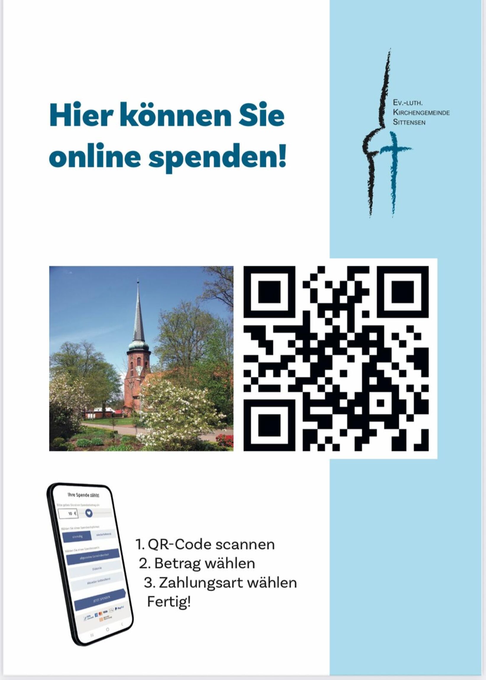 Der QR-Code für die Online-Spende unserer Kirchengemeinde wird u.a.
