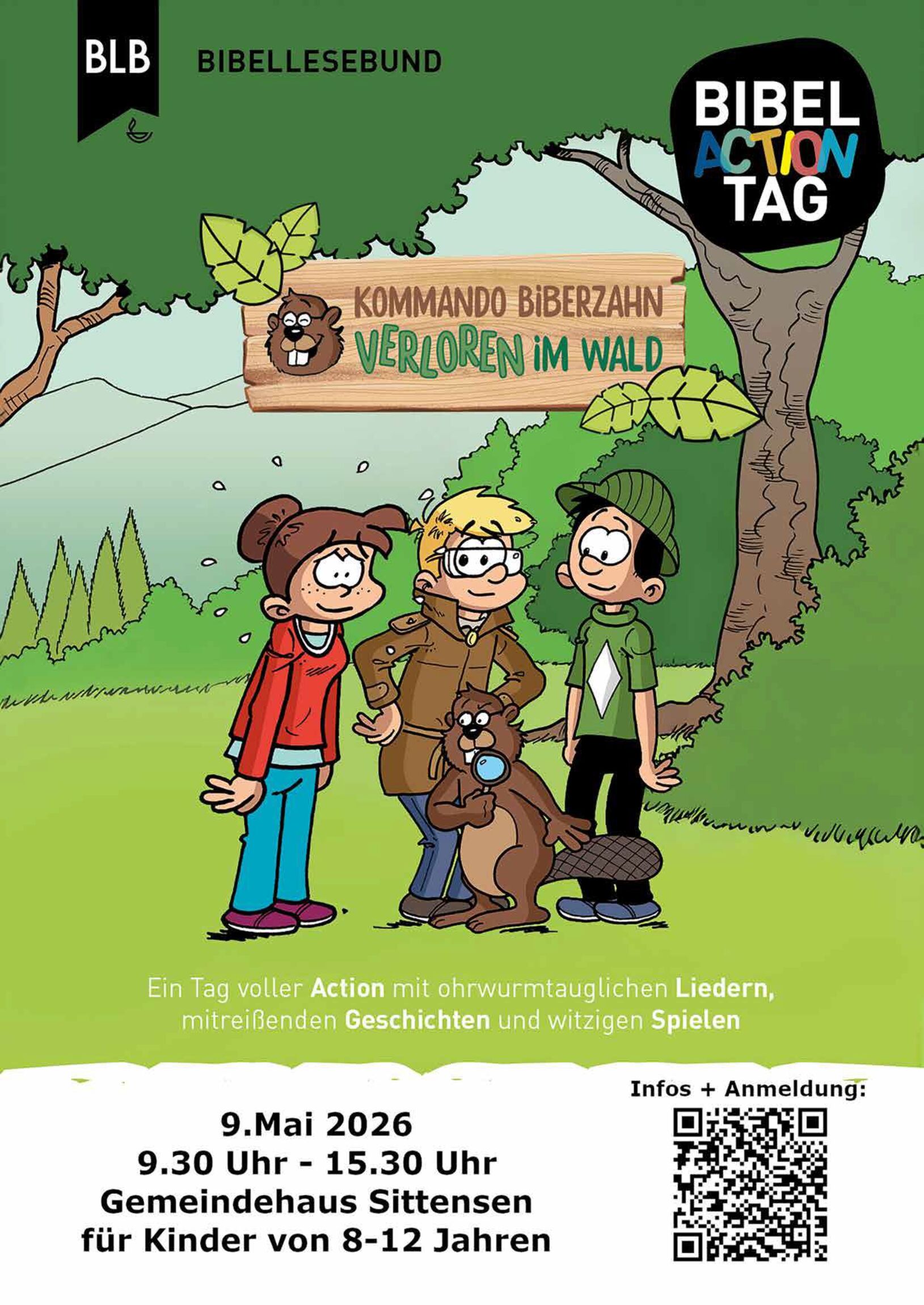 Einmal im Jahr findet ein Bibel-Action-Tag bei uns im Gemeindehaus statt. Ein Tag für Kinder voller Action mit dem Programm vom Bibellesebund-Kinderteam und einem Mitarbeitendenteam aus unserer Kirchengemeinde.