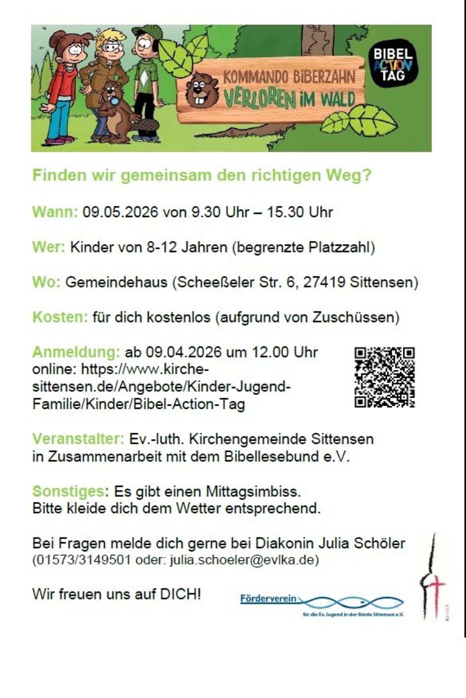 Am 9. Mai findet ein Bibel-Action-Tag bei uns im Gemeindehaus statt. Ein Tag für Kinder voller Action mit dem Programm vom Bibellesebund-Kinderteam und einem Mitarbeitendenteam aus unserer Kirchengemeinde.